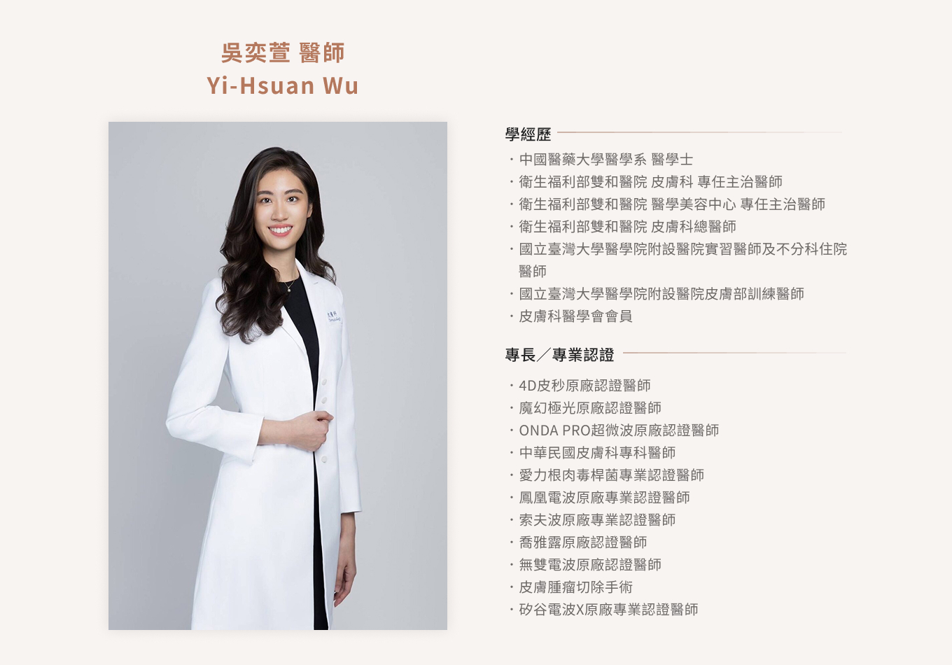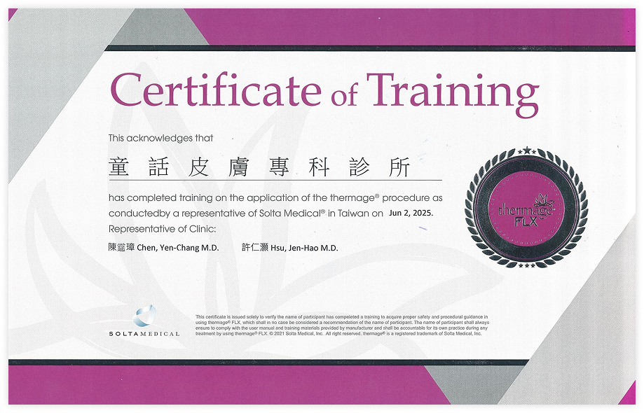 依據台灣衛部醫字第1031660048號、台灣衛署醫字0990262180號、台灣衛部醫字第1031662939號辦理,請特別留意本宣傳名稱與仿單不盡相同(Off-label use),部分為仿單核准適應症外的使用介紹,或口語化供理解,僅供参考;正式療程/儀器名稱、效/果等,均以醫師「親自說明」為準。