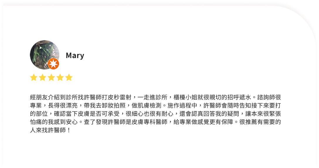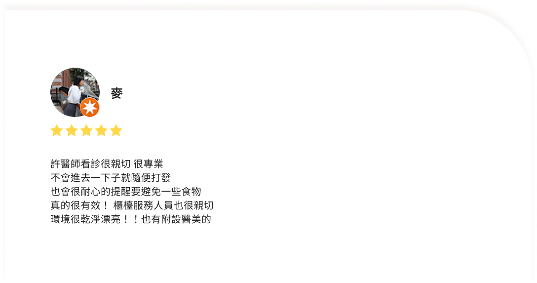 本頁資訊所揭露之案例,皆經當事者完整授權,係屬為案例分享,每個人治療效果與個人體質皆不相同,故本諮詢僅供患者做術前評估與參考使用。
