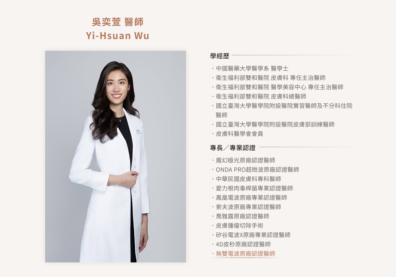 依據台灣衛部醫字第1031660048號、台灣衛署醫字0990262180號、台灣衛部醫字第1031662939號辦理,請特別留意本宣傳名稱與仿單不盡相同(Off-label use),部分為仿單核准適應症外的使用介紹,或口語化供理解,僅供参考;正式療程/儀器名稱、效/果等,均以醫師「親自說明」為準。
